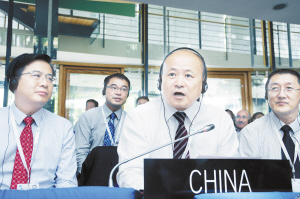 中國土司遺址入選世界遺產(chǎn)名錄 7月4日,在德國波恩舉行的第39屆聯(lián)合國教科文組織世界遺產(chǎn)委員會會議(世界遺產(chǎn)大會)上,中國國家文物局副局長童明康(前中)代表中國政府發(fā)言。中國土司遺址4日在第39屆聯(lián)合國教科文組織世界遺產(chǎn)委員會會議(世界遺產(chǎn)大會)上獲準(zhǔn)列入世界遺產(chǎn)名錄,成為中國第48處世界遺產(chǎn)。新華社發(fā)