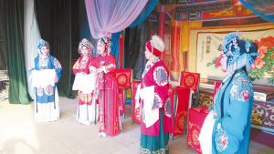 演出現(xiàn)場(chǎng),臺(tái)上,演員唱腔優(yōu)美(如圖);臺(tái)下,看戲群眾被演員精彩的表演深深吸引,不時(shí)還跟著唱上幾句,熱烈的掌聲和叫好聲不絕于耳。