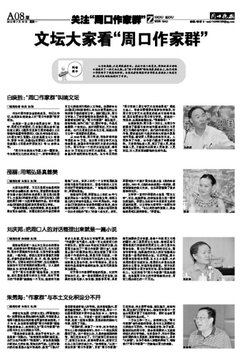 對(duì)于“周口作家群”崛起現(xiàn)象,劉慶邦說(shuō),自己雖然是周口的本土作家,但對(duì)于周口的“作家群”能撐起一片天地,起初并不抱有多大希望,因?yàn)樵谖膶W(xué)豫軍里,數(shù)南陽(yáng)的“作家群”名氣最大,也是一支比較有實(shí)力的作家隊(duì)伍。直到2005年應(yīng)地方政府之邀,他回周口參加了“‘周口作家群’研討會(huì)”,也就是從那個(gè)時(shí)候開始很認(rèn)真地閱讀了周口本地每個(gè)作家的作品,真是不看不知道,一看嚇一跳,在周口這塊并不發(fā)達(dá)的土地上竟然活躍著幾百名作家,老中青相結(jié)合,而且優(yōu)秀的作品呈逐年遞增的態(tài)勢(shì),說(shuō)來(lái)可真是欣喜加驚喜。