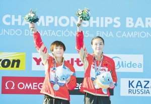 中國(guó)跳水隊(duì)在上屆世錦賽上包攬全部(10塊)金牌。吳敏霞當(dāng)時(shí)與何姿搭檔奪得該項(xiàng)目冠軍。此次,她與施廷懋的“以老帶新”組合也為“夢(mèng)之隊(duì)”的衛(wèi)冕之旅取得開(kāi)門紅。