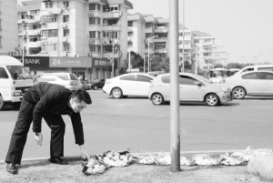 3月12日,一名交警下班后來到茆盛泉執(zhí)法時不幸殉職的路口獻(xiàn)花。